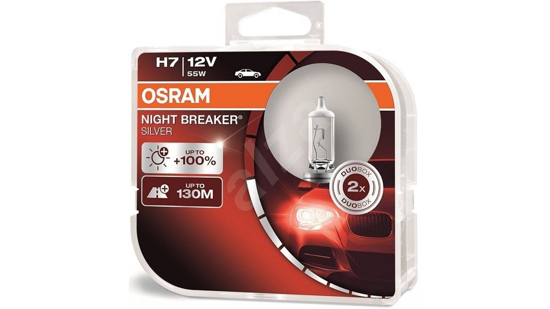 Žárovky NIGHT BREAKER SILVER od kvalitní německé značky OSRAM jsou výkonné halogenové automobilové žárovky s dlouhou životností. Díky své vysoké svítivosti zlepšují rozhled řidiče na vozovku a tím zvyšují vaši bezpečnost při cestování autem. Výrobce garantuje až o 100% větší svítivost než klasická halogenová žárovka a viditelnost světelného kužele až o 130 metrů více. Bělejší světlo přispěje k zabraňování pocitu únavy, lepší rozhledanosti na vozovku a elegantnímu vzhledu vozu. Žárovky značky OSRAM jsou mezi motoristy velmi oblíbené iz důvodu vysoké životnosti oproti klasickým halogenovým žárovkám. Více světla a celková lepší viditelnost kterou produkuje tato žárovka vám může pomoci rychleji identifikovat a následně reagovat na různá dopravní rizika, která cesta autem přináší. Barevná teplota: 3300 K, Výkon: 55W, Světelný tok: 1500 lm, Napájecí napětí: 12V, Patice: H7 (PX26d), Obsah balení: 2 kusy.