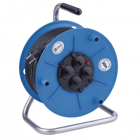 Gumový prodlužovací kabel na bubnu se 4 zásuvkami a délkou 50m. Průřez vodiče má 1,5m2 a tepelnou pojistku. Je odolný proti stříkající vodě a ve všech zásuvkách je fáze orientovaná vlevo. Vhodný je pro maximální zátěž 16A / 3680W při plně rozvinutém stavu a 4,8A / 1100W při navinutém stavu.