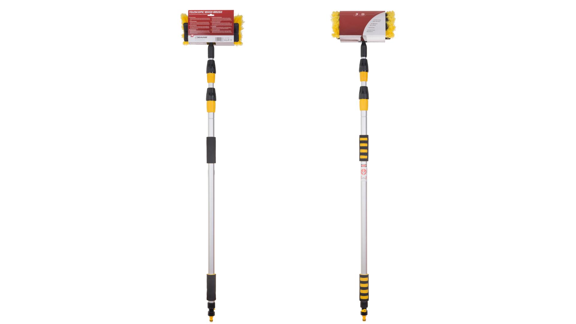 Tento teleskopický kartáč je určen hlavně pro mytí automobilů. Teleskopickou rukojeť lze vysunout až na délku 3 metry, což vám umožňuje mytí automobilů větších rozměrů. Tyč je z části pokryta pěnou pro komfortní a pohodlné uchopení rukojeti. Tyč je zhotovena z kvalitního a pevného hliníku s možností připojení k hadici se standardním ½ konektorem pro maximální a dokonalé umytí vozidla. Kvalitně zpracované umělé štětinky jsou šetrné vůči povrchům náchylným k poškrábání, jako například lak karoserie a podobně. Neváhejte a pořiďte si tento praktický teleskopický kartáč již dnes a dopřejte vašemu vozidlu to nejšetrnější a nejdetailnější umytí.