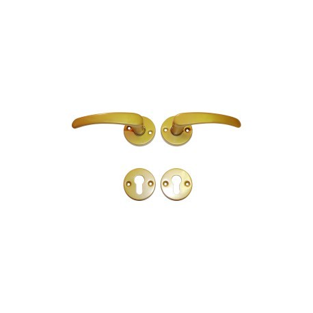 Klika Michaela + rozeta F Zlatá je interiérová klika. Klučka je s otvorem pro vložku. V balení se nacházejí šrouby.