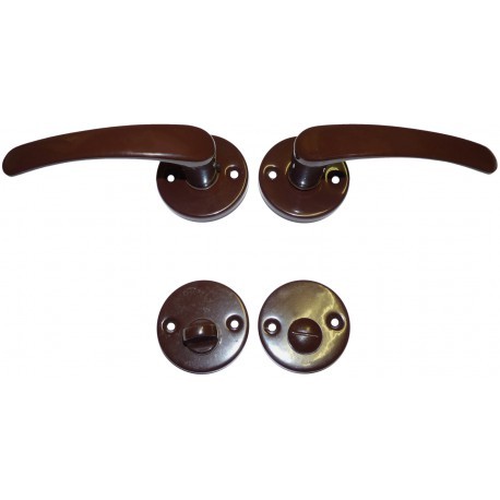Klika Michaela + rozeta WC Hnědá je interiérová klika. WC-klučka + rozeta. V balení se nacházejí šrouby.