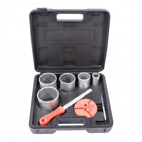 Sada diamantových vykružovacím s průměrem od 33mm do 83mm slouží k vrtání otvorů do dlaždic a obkladů. Díky této korunce budou Vaše kruhové otvory přesné a čisté.