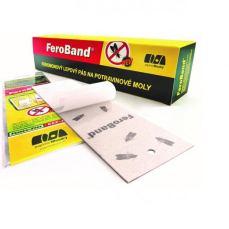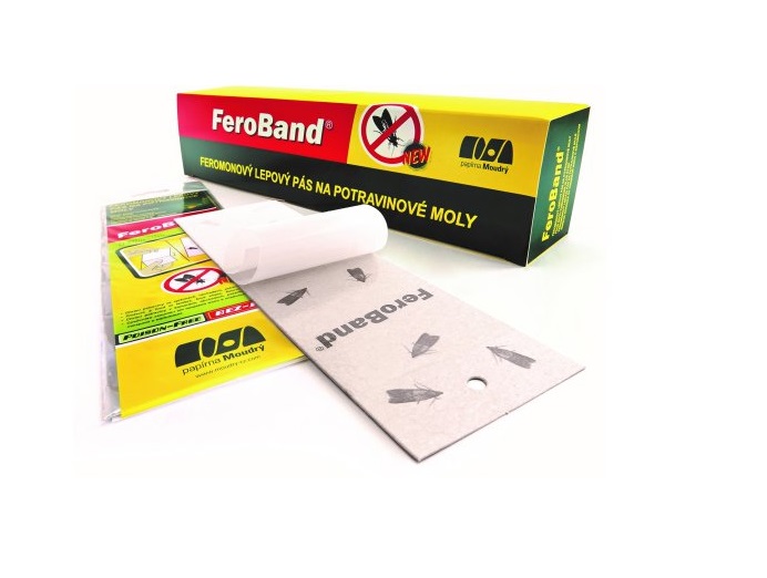Jednostranně lepící papírové pásy opatřené feromonem, který zaručuje účinný odchyt samců 4 druhů potravinových molů - zavíječe skladištního (Ephestia elutella), moučného (Ephestia kuehniella), datlového (Ephestia cautella) a paprikového (Plodia interpunctella).