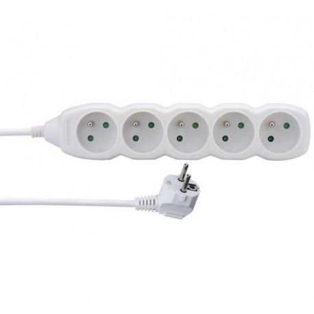 Prodlužovací kabel je praktický pomocník do domácnosti. Je bílé barvy. Podle počtu a provedení zásuvek můžete zapojit více spotřebičů do jedné zásuvky vzdálené od elektrické zástrčky.