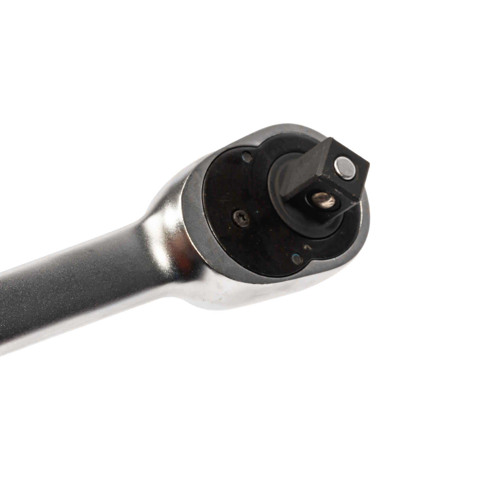 Ráčna s 36 zuby a přepínací páčkou. Chromový povrch odolný proti korozi. Aretace pevně drží hlavici na čtyřhranu a vylučuje samovolné uvolnění.Rychlá a snadná výměna hlavice pomocí pojistky.