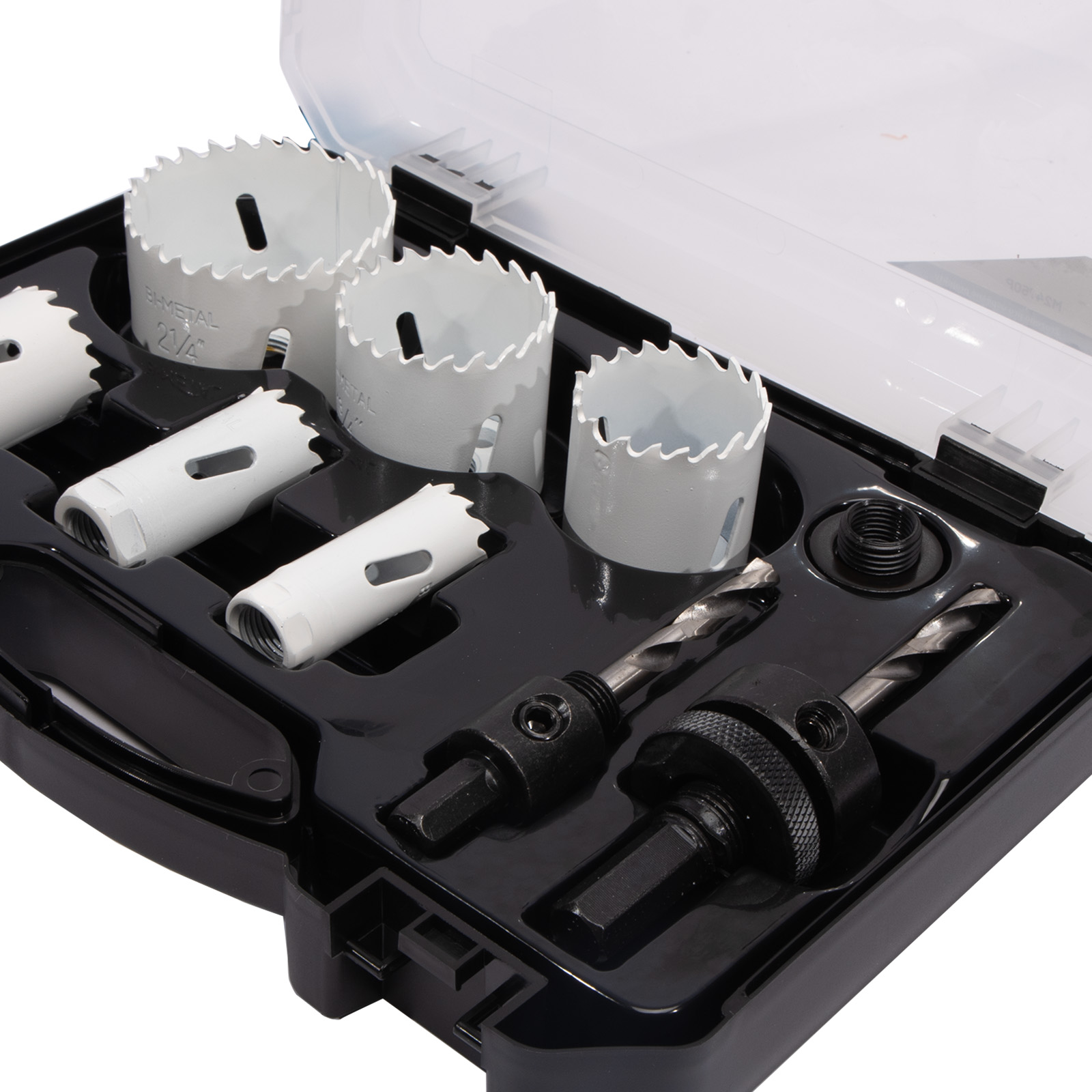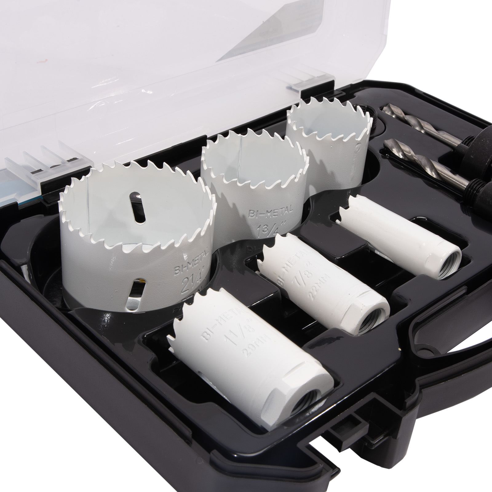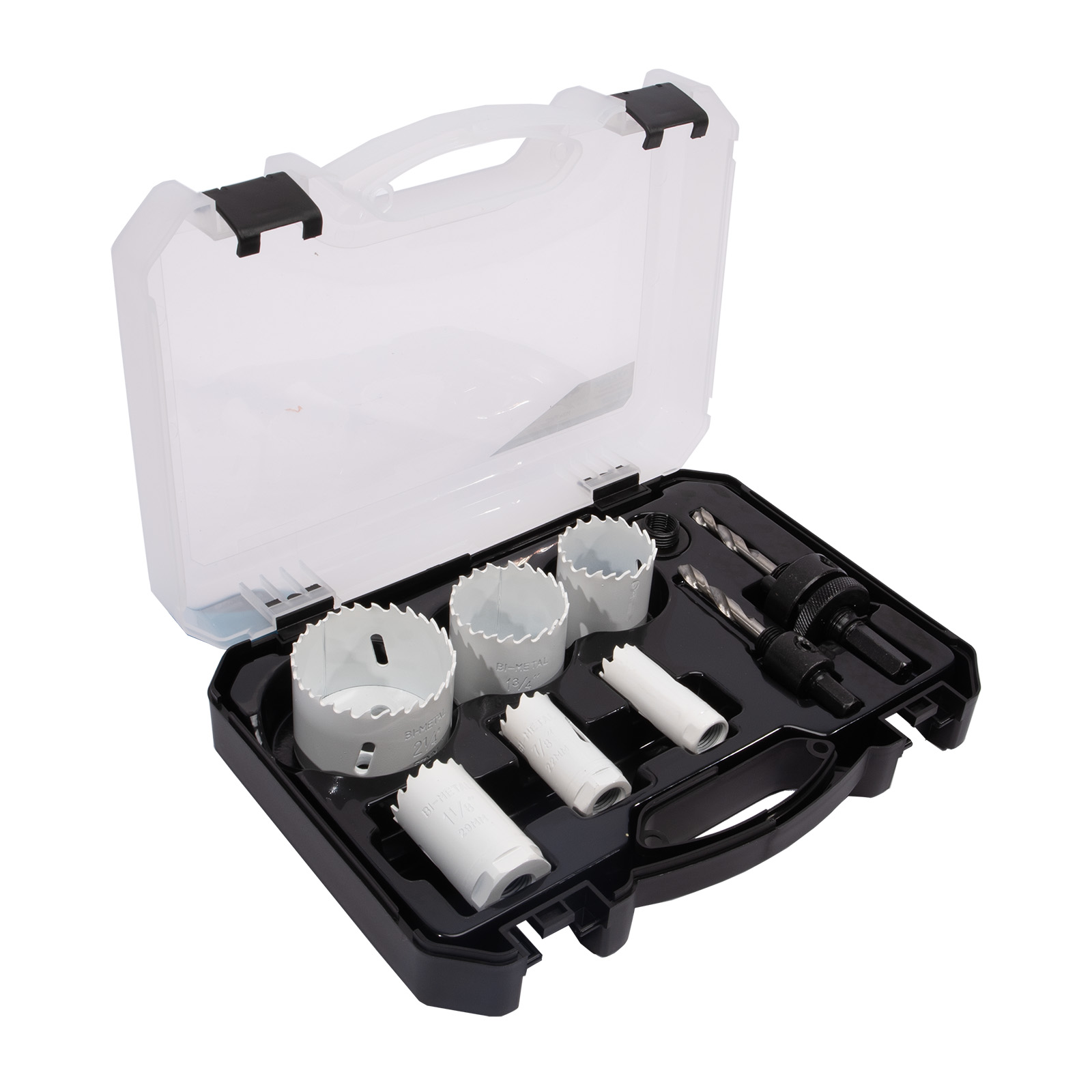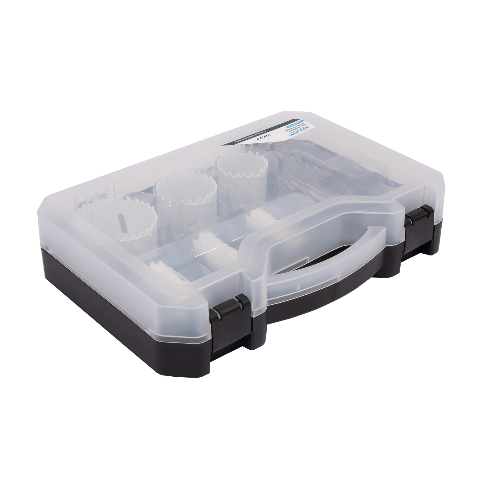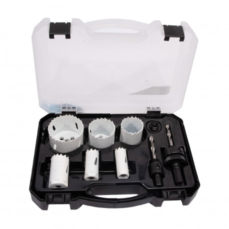 Vykružovacích korunky slouží pro přesné vrtání otvorů do dřeva a suchého zdiva pro instalatérské trubky, dveřní zámky atd. Výhodou je vysoká odolnost proti opotřebení, ocelové zuby pro hladší a rychlejší řez. Součástí balení je hliníkový box, vykružovací korunky a upínací držáky.