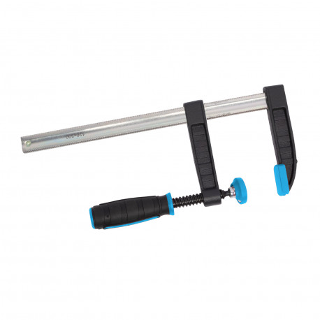 Stolařská svěrka pro přesné a pevné upnutí materiálu při lepení, vrtání nebo montáži. Robustní kovová konstrukce zajišťuje dlouhou životnost, zatímco ergonomická rukojeť umožňuje pohodlné a silné dotažení. Plastové krytky na čelistech chrání povrch materiálu před poškozením.