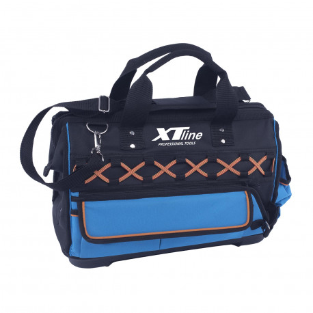 Taška na nářadí má 7 vnějších kapes, vyztužené PVC dno, přední gumový popruh, stahovací pásek na suchý zip, hlavní kapsu s vnitřním organizérem a 2 kovové očka pro popruh přes rameno. Umožňuje pohodlné přenášení nářadí a nástrojů.