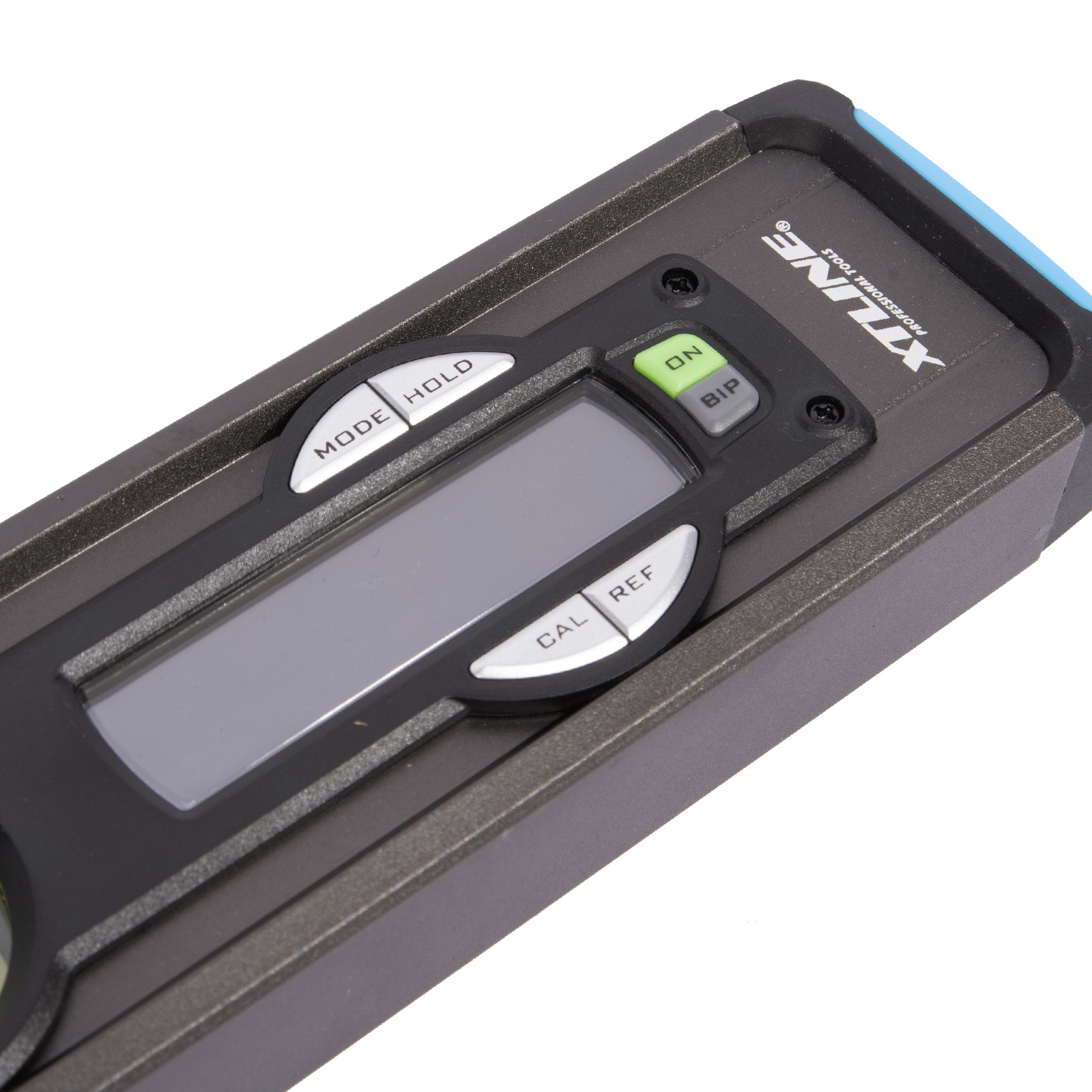 Zařízení se skládá z vodováhy s vodními bublinkami a digitálním displejem, který zobrazuje dané hodnoty.