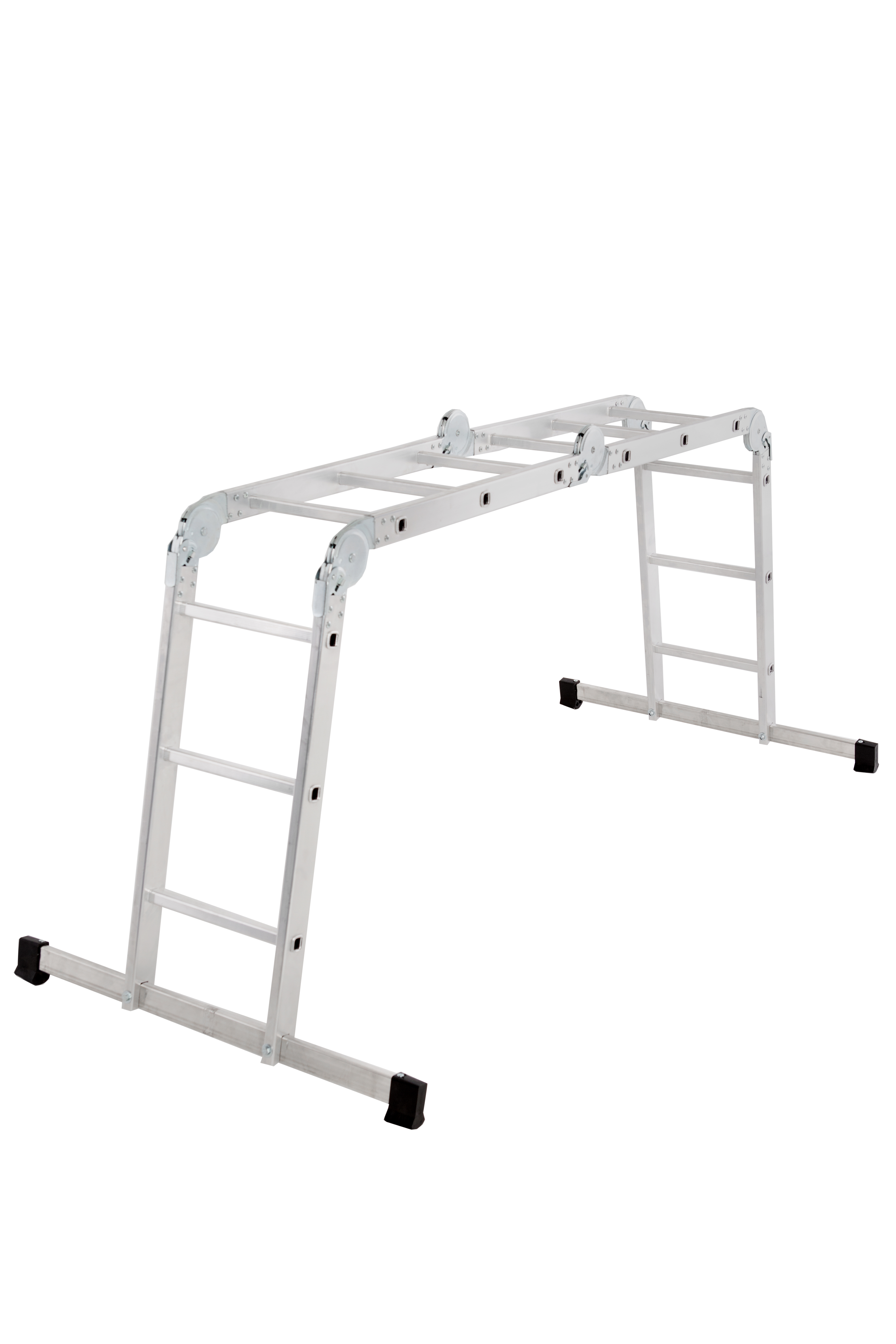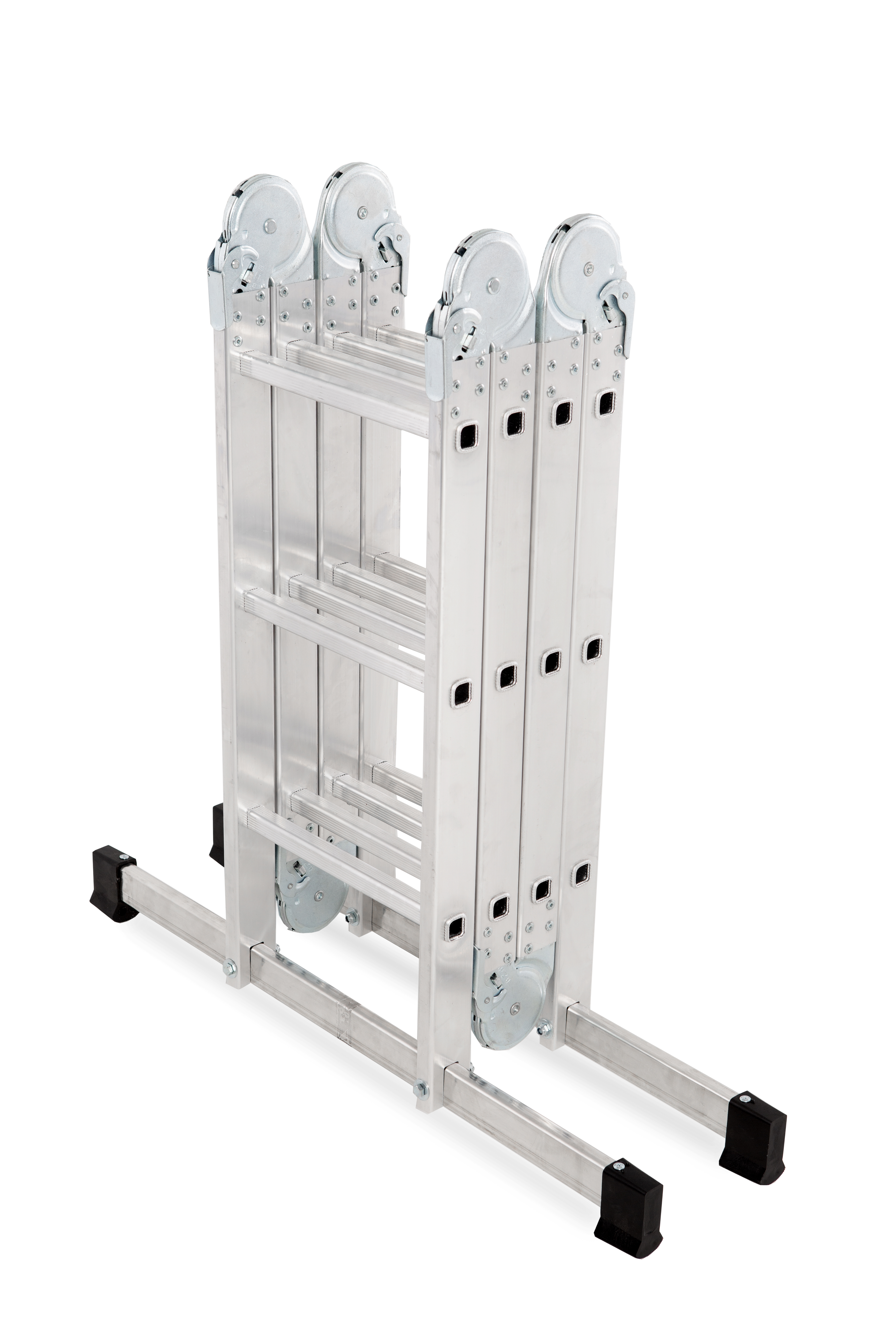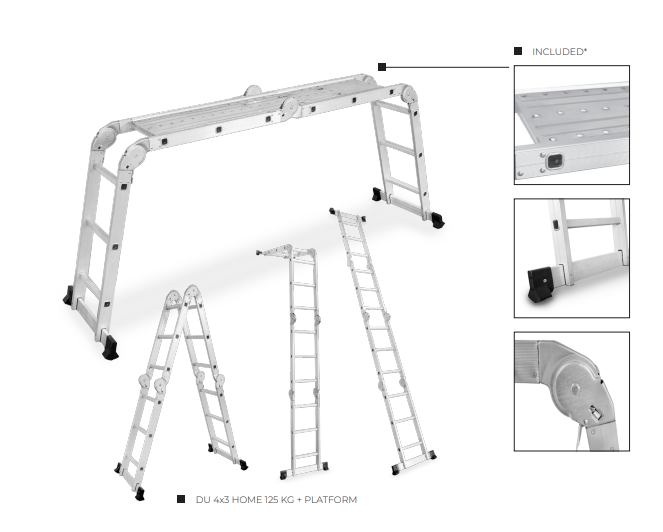 Univerzální rebrík 4x3 víceúčelový je určený pro každodennú prácu v domácnostiach. Rebrík obsahuje přizpůsobený na použití ve 4 různých konfiguracích, dva stabilizátory s rozměrem profilu 62x17mm, doplnené protišmykovými nožičkami, které chrání proti náhlému posunu.