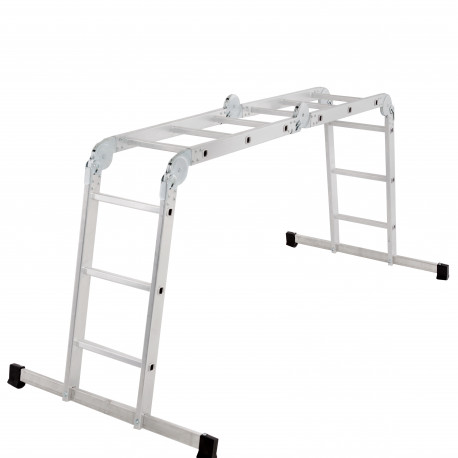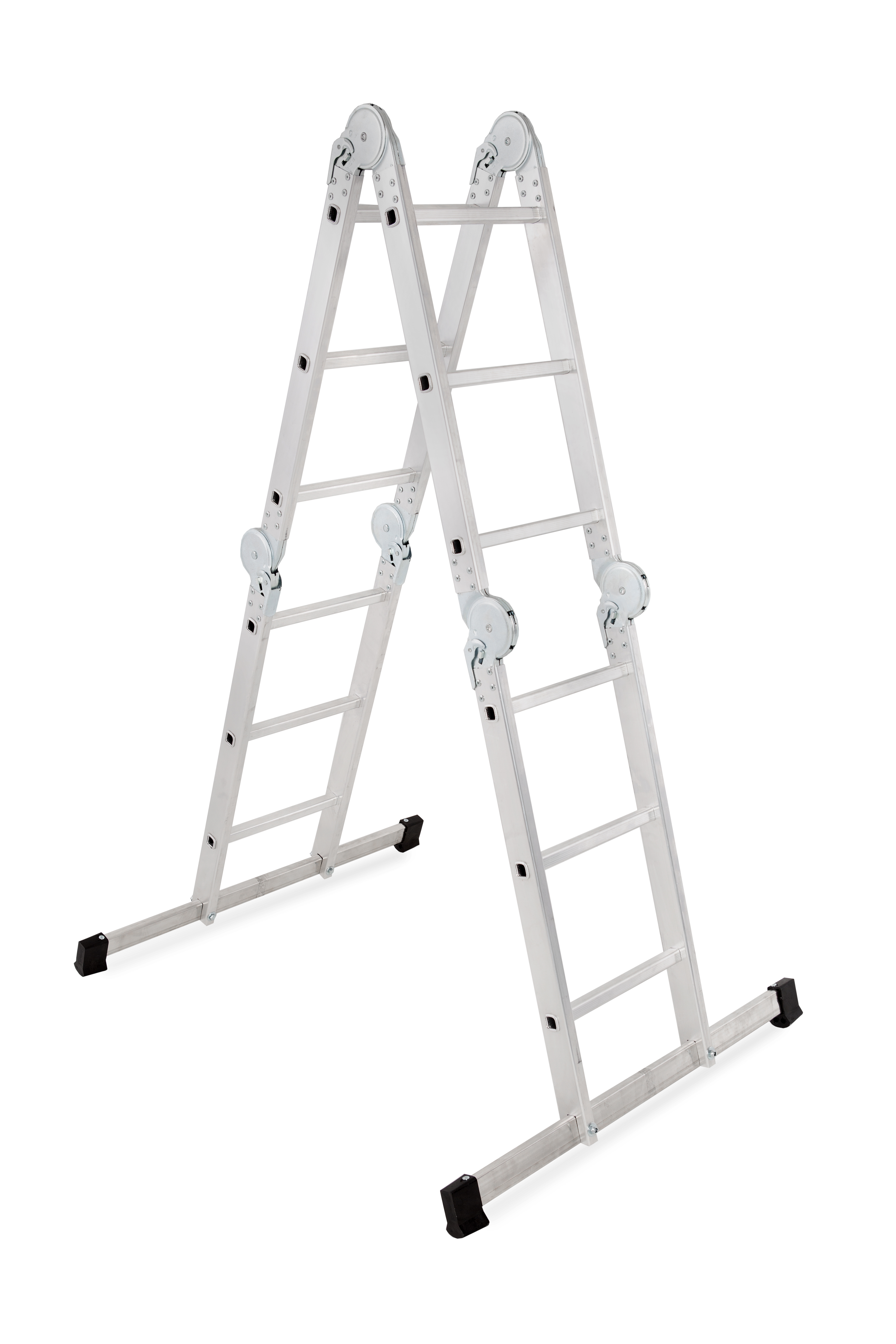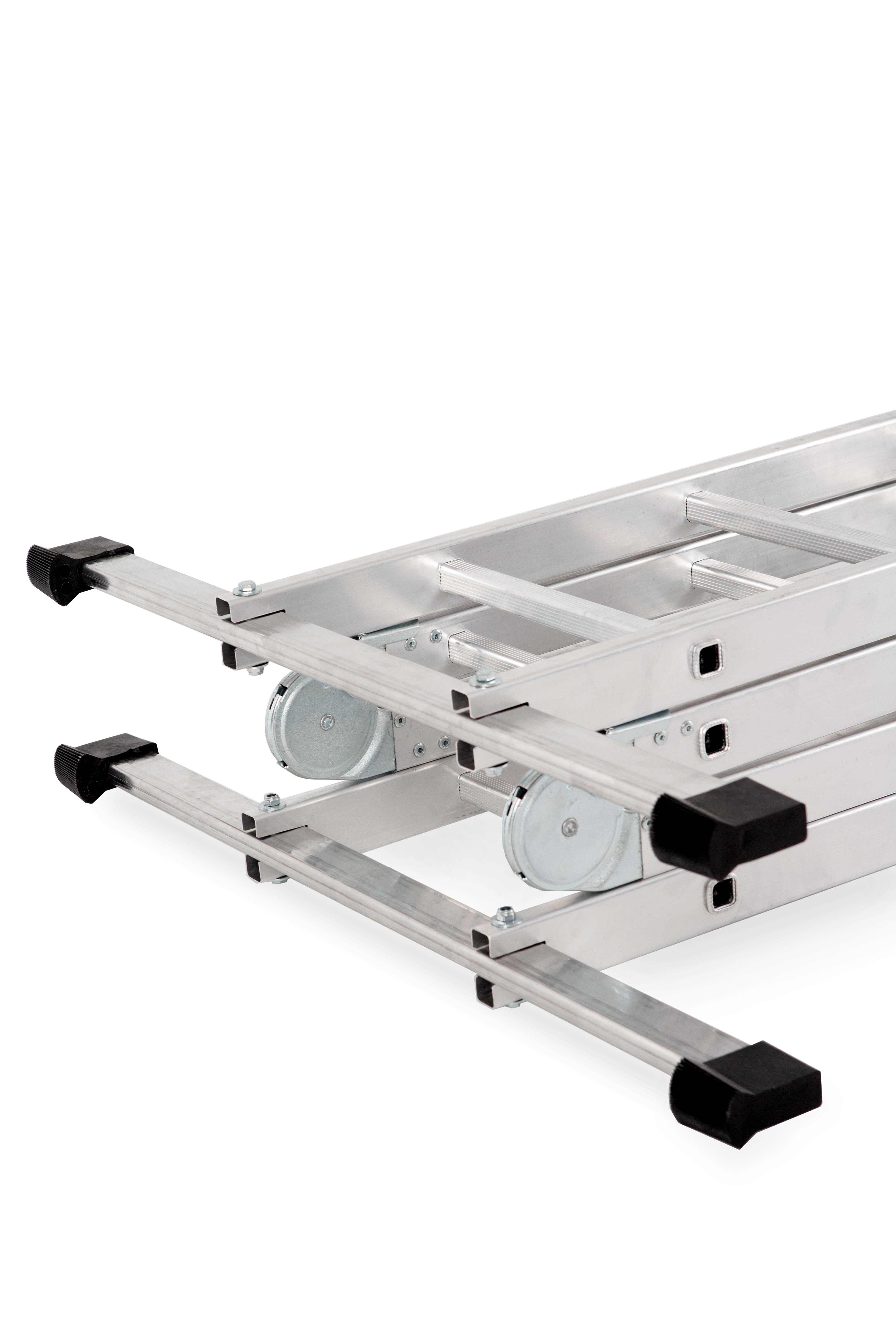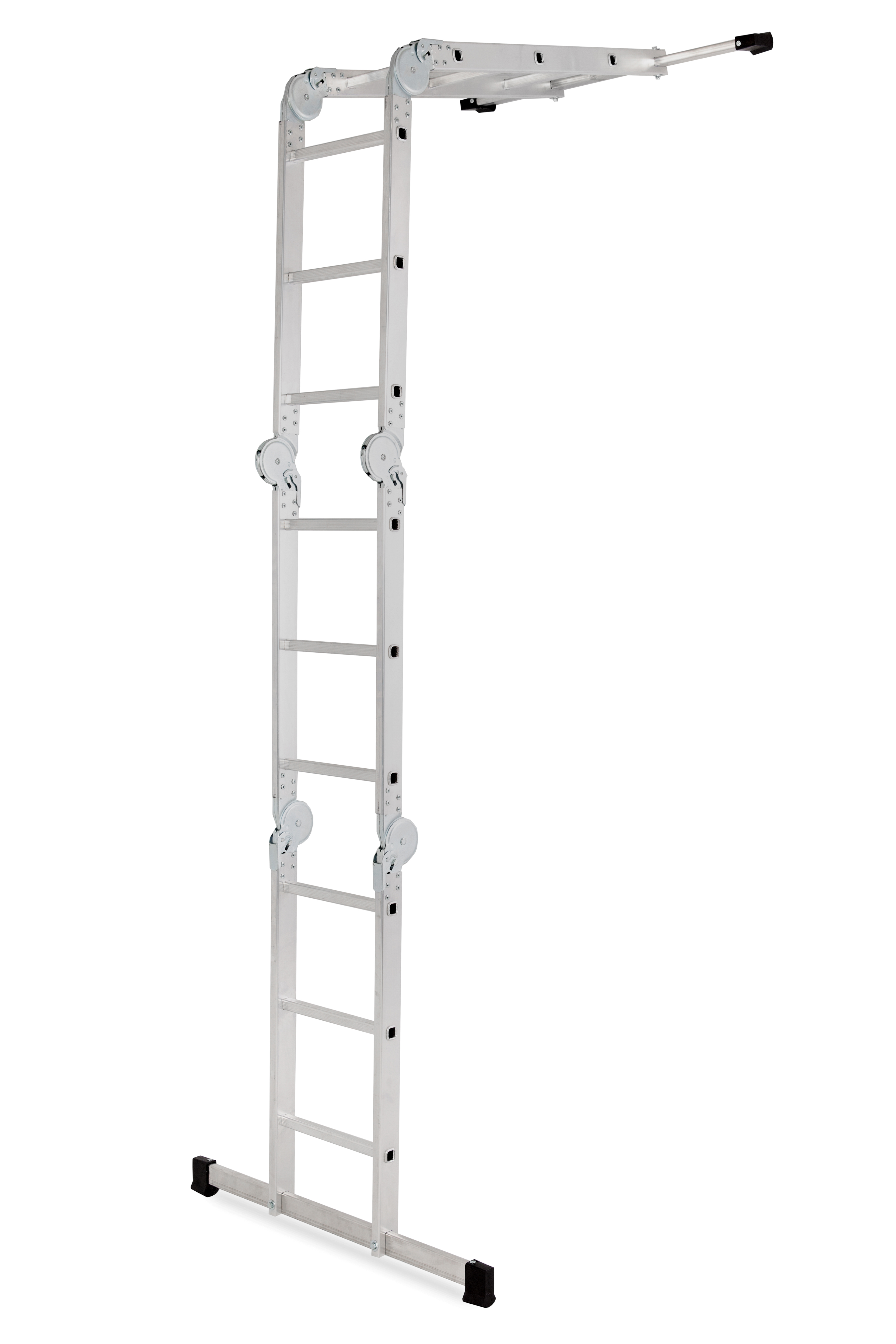 Univerzální rebrík 4x3 víceúčelový je určený pro každodennú prácu v domácnostiach. Rebrík obsahuje přizpůsobený na použití ve 4 různých konfiguracích, dva stabilizátory s rozměrem profilu 62x17mm, doplnené protišmykovými nožičkami, které chrání proti náhlému posunu.